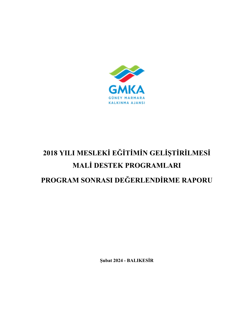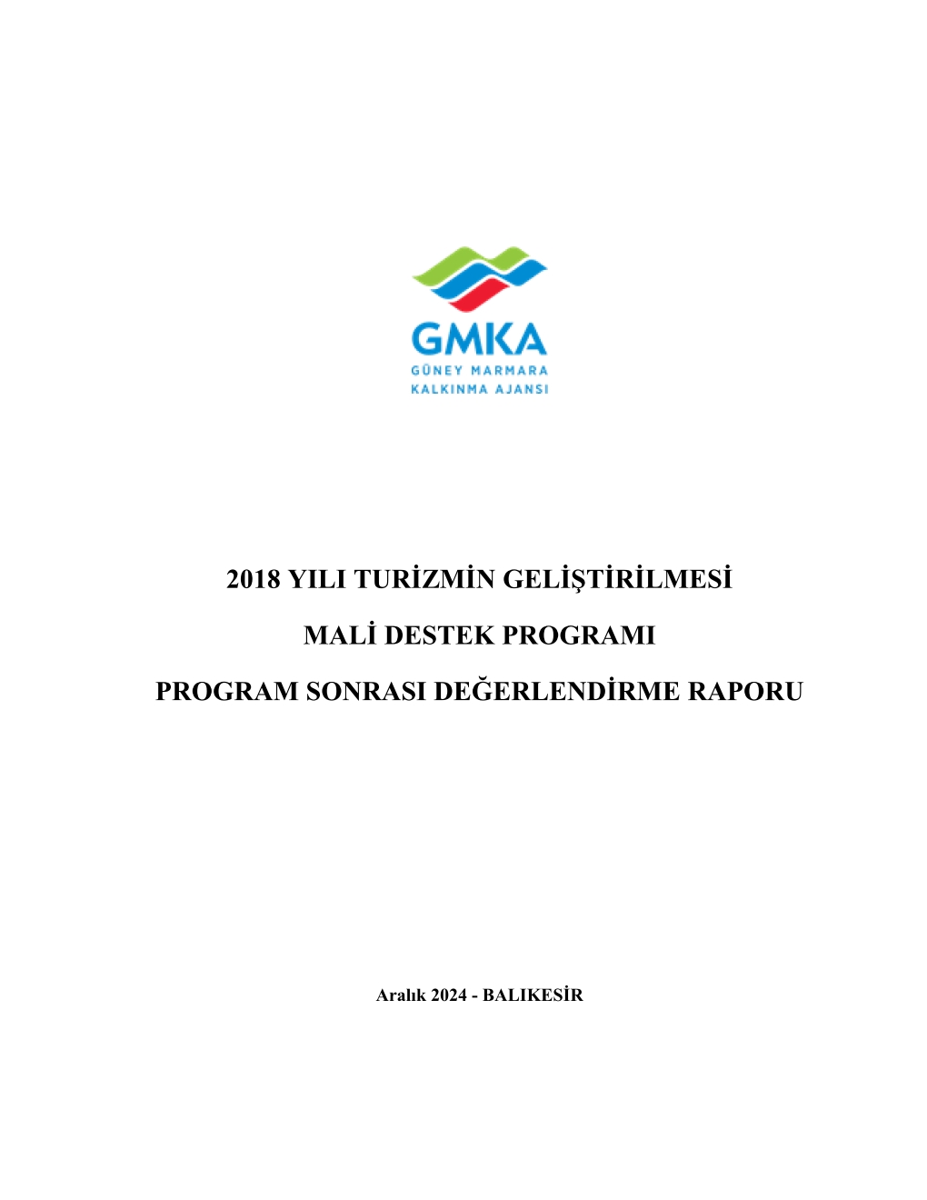 2018 Yılı Turizm Altyapısının Geliştirilmesi Küçük Ölçekli Altyapı MDP Program Sonrası Değerlendirme Raporu