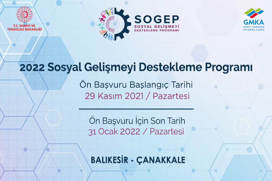 2022 Yılı Sosyal Gelişmeyi Destekleme Programı (SOGEP) Ön Başvuru Formuna 29 Kasım 2021 Pazartesi günü itibariyle aşağıdaki linkten ulaşabilirsiniz.