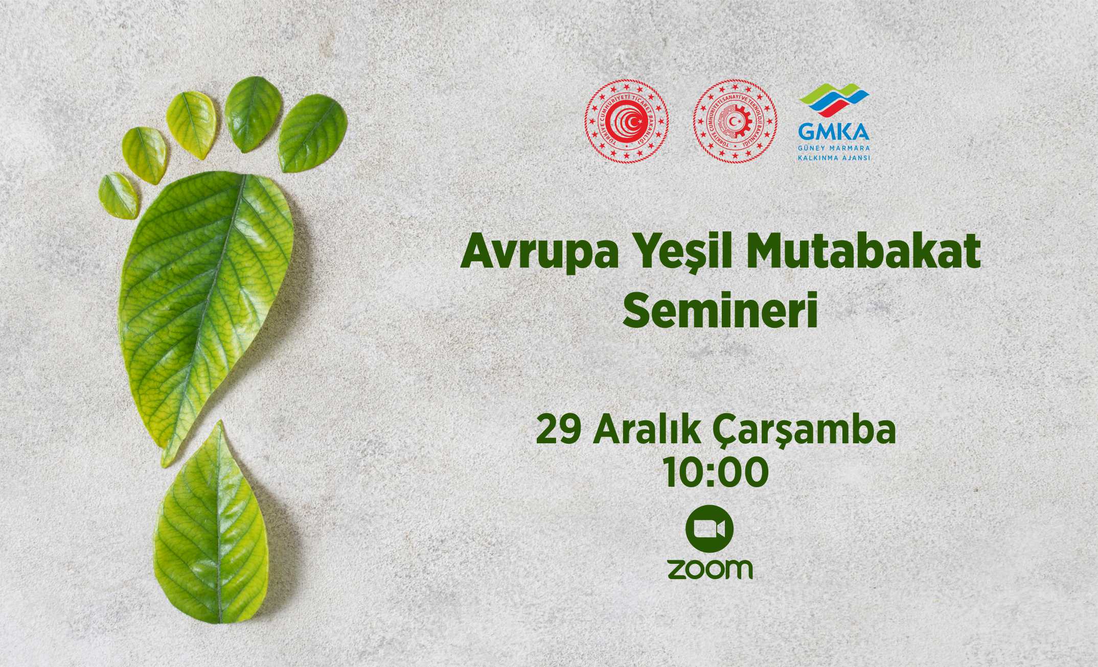 29.12.2021 Çarşamba günü 10.00-12.00 saatleri arasında Ticaret Bakanlığı Uluslararası Anlaşmalar ve Avrupa Birliği Genel Müdürlüğü ile Güney Marmara Kalkınma Ajansı iş birliğinde Tek Pazar, Rekabet ve Teknik Mevzuat Uyum Dairesinden Ticaret Uzmanı Ceren Fırat tarafından “Avrupa Yeşil Mutabakatı” ile ilgili zoom üzerinden sunum gerçekleştirilecektir.