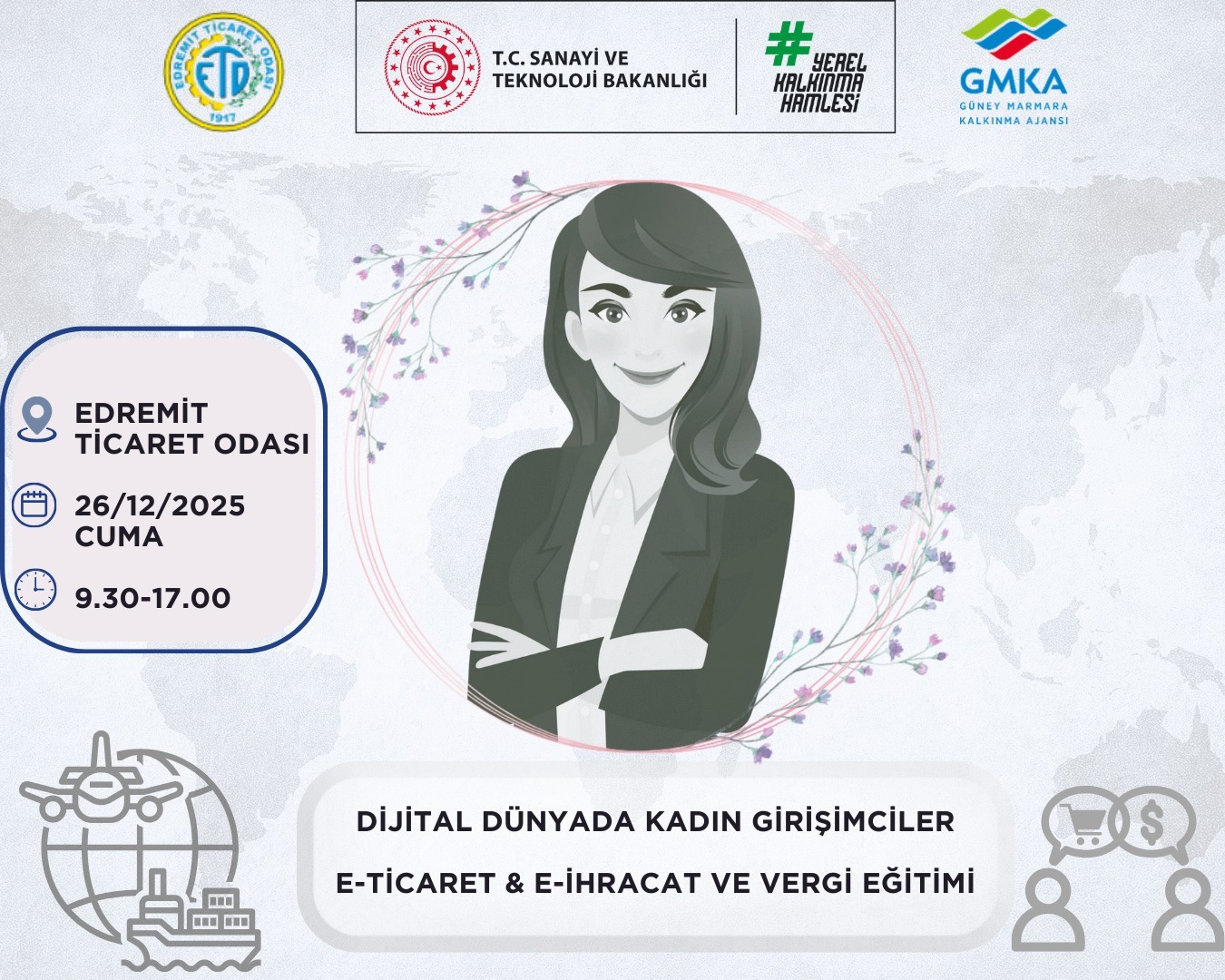 Kadın girişimciliğini desteklemek amacıyla, Ajansımız ile Edremit Ticaret Odası işbirliği ile gerçekleştirilecek olan eğitim 26 Aralık 2025 Cuma günü Edremit Ticaret Odasında gerçekleştirilecek. Kadınlara yönelik bu özel programda, dijital pazarlarda yer almak isteyen girişimciler için hem iç hem dış pazarda satış yapmanın yolları detaylı şekilde ele alınacak.