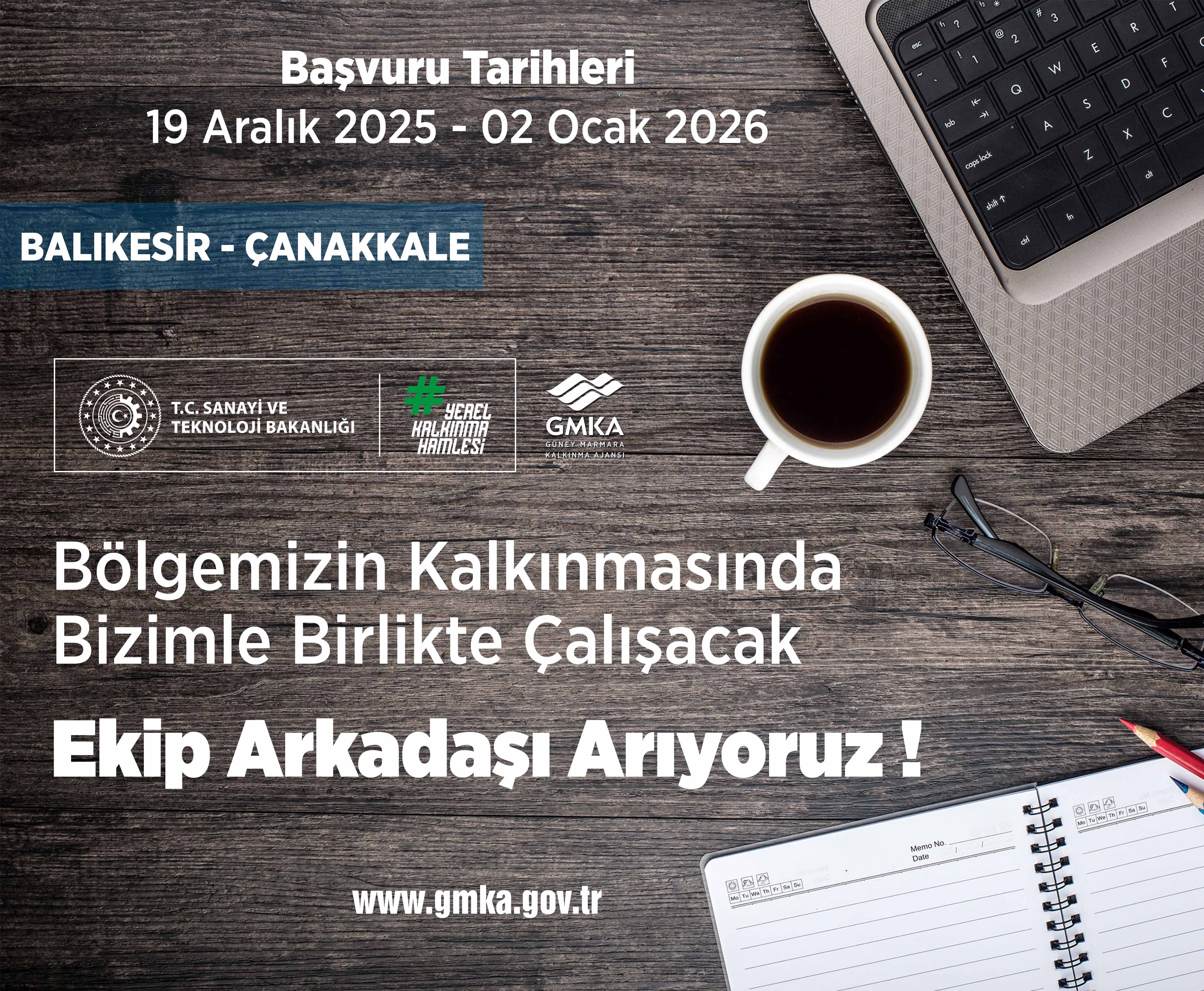 Güney Marmara Kalkınma Ajansı, 4 sayılı Bakanlıklara Bağlı, İlgili, İlişkili Kurum ve Kuruluşlar İle Diğer Kurum ve Kuruluşların Teşkilatı Hakkında Cumhurbaşkanlığı Kararnamesi ile Kalkınma Ajansları Personel Yönetmeliği hükümleri çerçevesinde, TR22 Bölgesinin (Balıkesir ve Çanakkale illeri) kalkınmasına ve gelişmesine hizmet etmek ve katkıda bulunmak isteyen, yeniliğe ve gelişime açık, analitik düşünebilen, değişen çalışma koşullarına uyum sağlayabilen, hizmet ve kalkınma bilinciyle ve sorumluluğuyla hareket eden, seyahat engeli olmayan 1 uzman personel ve 1 destek personeli (büro görevlisi) alımı gerçekleştirecektir