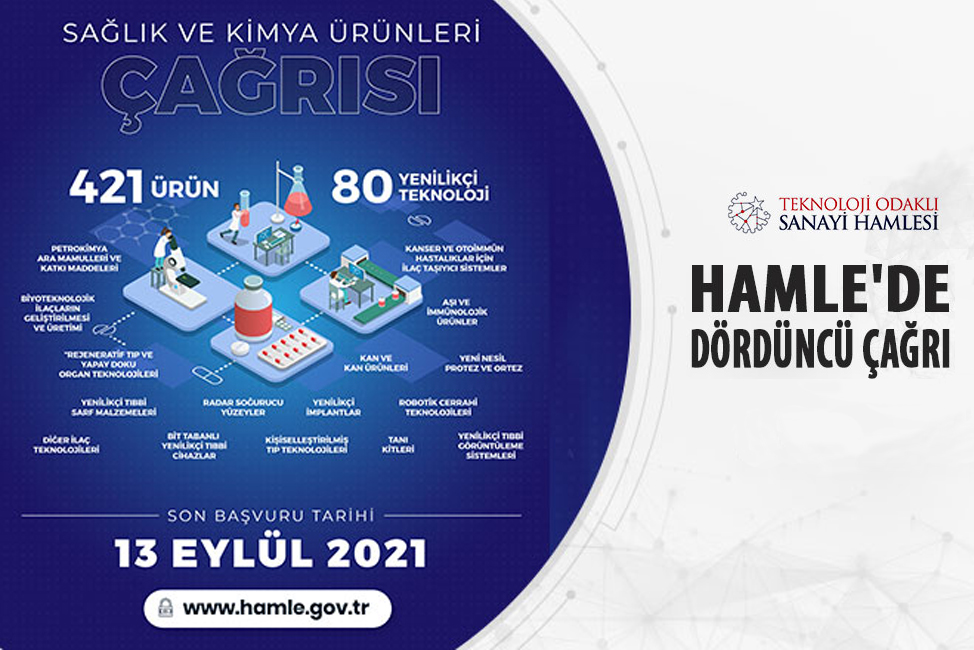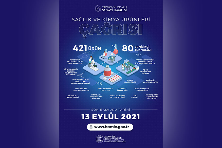 Sağlık ve Kimya Ürünleri Çağrısı'na 13 Eylül'e kadar başvurulabilecek. Tamamen elektronik ortamda yürütülecek başvurular, Türkiye'de yerleşik sermaye şirketleri tarafından hamle.gov.tr adresinden gerçekleştirilebilecek.