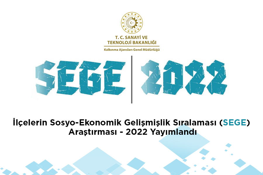 Sanayi ve Teknoloji Bakanlığı Genel Müdürlüğü tarafından Bölgesel gelişme alanında referans çalışmalarından biri olacağı öngörülen İlçe Sosyo-Ekonomik Gelişmişlik Sıralaması Araştırmaları (SEGE) 2022 çalışması yayımlandı.