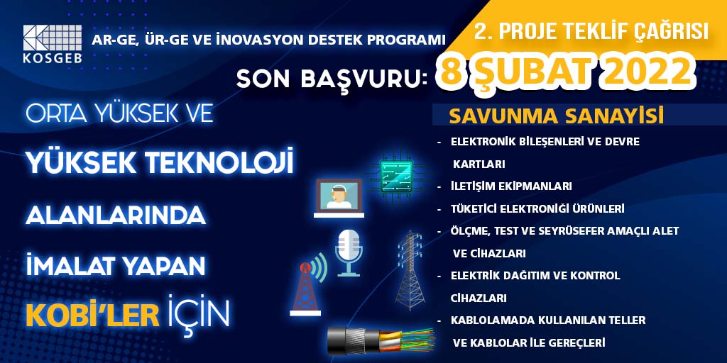 2021-02 Rekabetçi ve Yüksek Katma Değerli Üretimin Artırılması İçin Öncelikli Sektörlerdeki İşletmeler ile Savunma Sanayi İhtiyaçlarını Millileştirme Kapsamında İşletmelerin Ar-Ge ve İnovasyon ile Ür-Ge Projelerinin Desteklenmesi