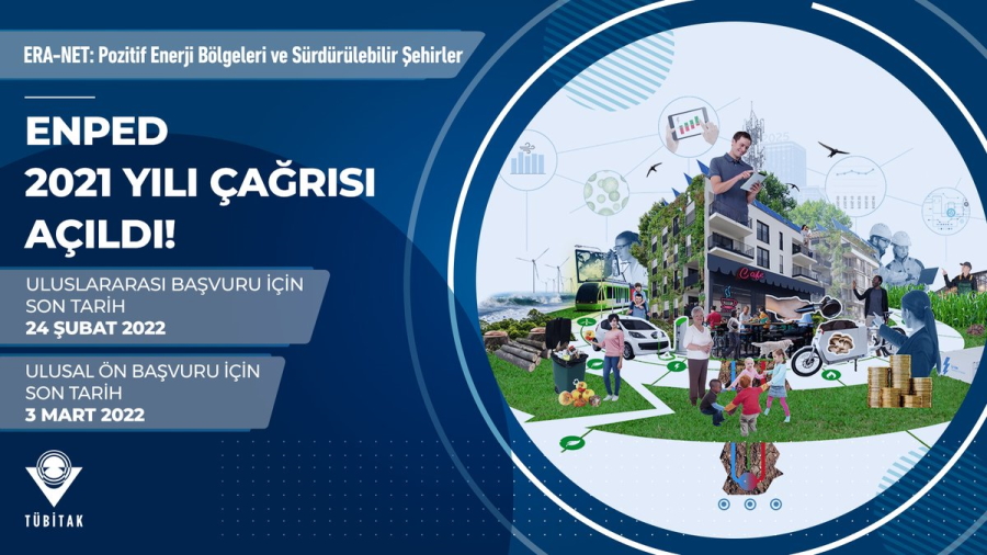 Pozitif Enerji Bölgeleri ve Sürdürülebilir Şehirler (ENPED) çağrısının amacı Avrupa Birliği’nin 2030 yılına kadar 100 şehrin iklim tarafsızlıklarının sağlanmasına yönelik araştırma ve yenilik kapasitesinin oluşturulmasının planlanması, uygulanması ve faaliyete geçirilmesine katkıda bulunulmasıdır. ENPED 2021 yılı çağrısına Türkiye, Avusturya, Belçika, Danimarka, Hollanda, İtalya, Romanya ve İsveç fonlama ajansları katılım göstermektedir. Konsorsiyumlar çağrıya katılan en az 2 farklı ülkeden en az 2 bağımsız katılımcı ile oluşturulabilecektir. Oluşturulacak konsorsiyumlarda en az bir ortağın şehir, belediye veya kentsel hizmetler sağlayan kuruluş olması beklenmektedir.