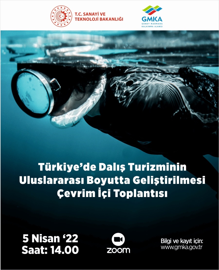 Güney Marmara Kalkınma Ajansı koordinasyonunda, 5 Nisan 2022 tarihinde "Türkiye'de dalış turizminin uluslararası boyutta geliştirilmesi" çevrimiçi toplantısı gerçekleştirilecektir. Düzenlenecek çevrimiçi toplantıya ait zoom katılım bilgileri ve toplantı program akışı aşağıda belirtilmiştir.