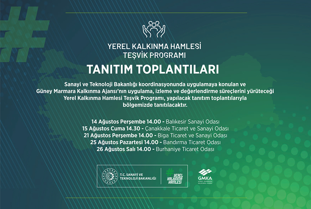 Sanayi ve Teknoloji Bakanlığı koordinasyonunda uygulamaya konulan ve Güney Marmara Kalkınma Ajansı’nın izleyeceği Yerel Kalkınma Hamlesi Teşvik Programı’na başvurular başladı. Türkiye genelinde yerel ekonomik potansiyelleri harekete geçirmeyi hedefleyen programda ülke genelinde her il için yatırım konuları belirlendi. Balıkesir ve Çanakkale için belirlenen yatırım konularına yapılacak yatırımlar teşvikler kapsamında desteklenecek.
