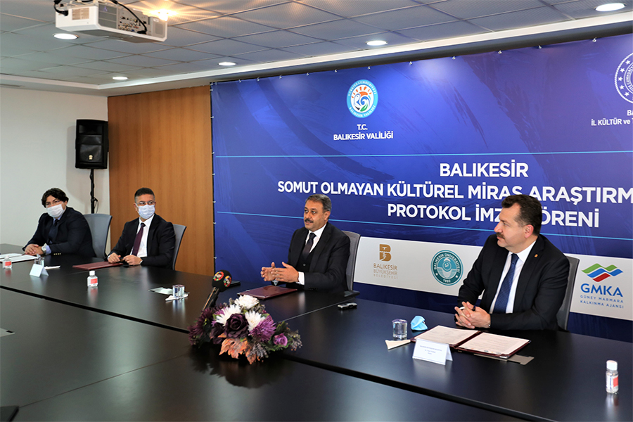 Balıkesir Valiliği, Balıkesir Büyükşehir Belediyesi, Balıkesir Üniversitesi, Bandırma Onyedi Eylül Üniversitesi, İl Kültür ve Turizm Müdürlüğü ve Güney Marmara Kalkınma Ajansı (GMKA) arasında bir törenle “Somut Olmayan Kültürel Miras Araştırmaları” İşbirliği Protokolü imzalandı.